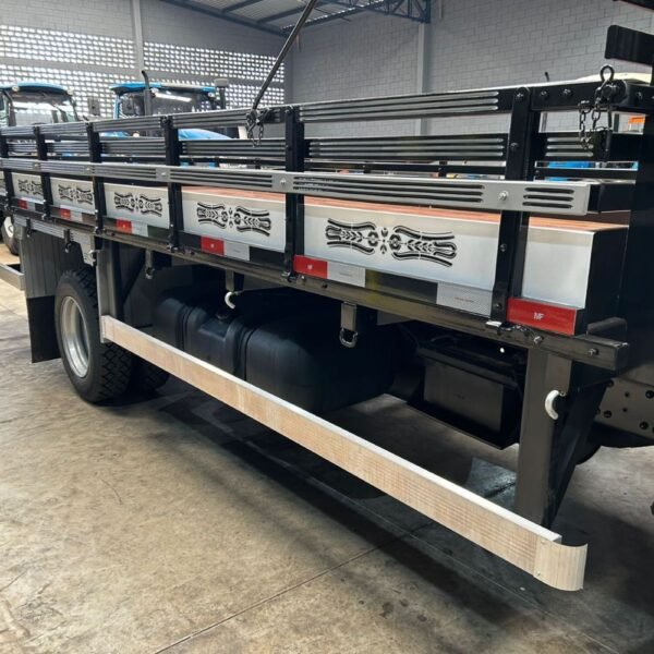 Carroceria Zero: Madeira de lei, envernizada, sem uso. Já equipada com protetores laterais (ciclista) em alumínio, atendendo a legislação.