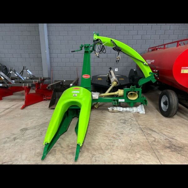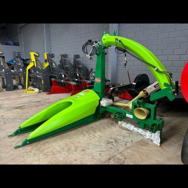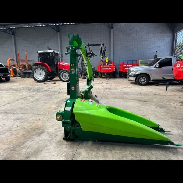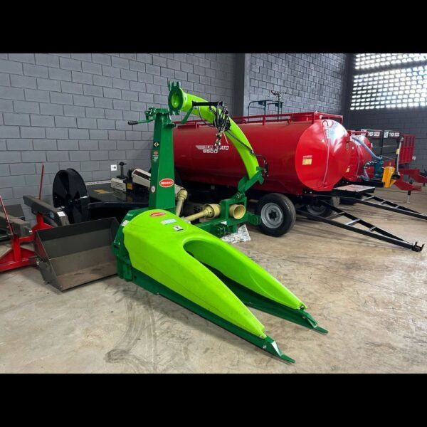 FORÇA BRUTA (TRANSMISSÃO POR CARDAN): Esqueça as correias que patinam na hora que a máquina “pesa”. Este modelo possui Transmissão Direta por Cardan e Caixa de Engrenagens. Isso significa torque máximo no rotor e colheita sem interrupções, mesmo em milho pesado.