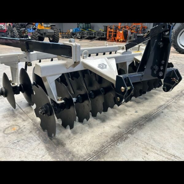 CAPACIDADE DE ACABAMENTO (28 DISCOS): Com 28 discos, ela oferece uma largura de trabalho excelente para tratores médios, garantindo o destorroamento fino e o selamento da superfície para o plantio. A configuração com discos recortados na dianteira ajuda a picar a palhada remanescente.