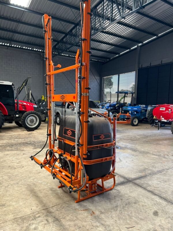 DIMENSIONAMENTO IDEAL (600L / 12M): A capacidade de 600 litros oferece boa autonomia para o trabalho, enquanto as barras de 12 metros garantem um rendimento operacional excelente, cobrindo uma faixa larga a cada passada, economizando diesel e horas de trator.