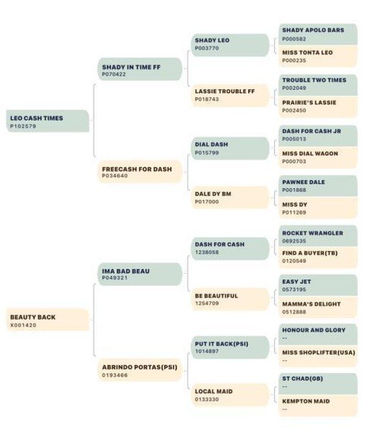 Sua mãe, BEAUTY BACK é neta de DASH FOR CASH :