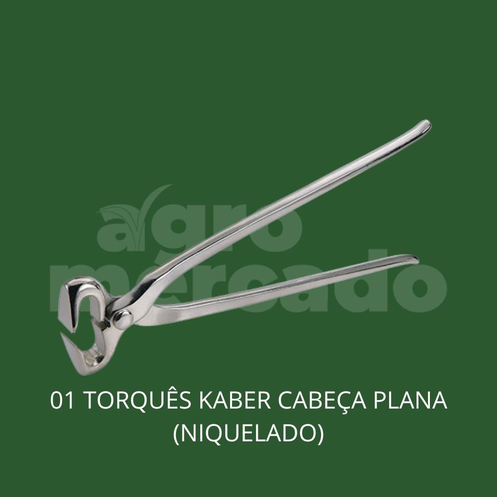 🛠️ 01 Torquês Kaber Cabeça Plana (Niquelado): A ferramenta de força bruta. Aço de alta resistência que corta o estojo córneo duro sem “mascar” e sem entortar a lâmina. O formato ergonômico poupa as mãos do casqueador.