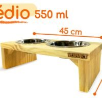 Os veterinários recomendam comedouros elevados para facilitar a deglutição e manter a postura correta do animal. Nosso kit é fabricado em madeira Pinus de alta qualidade, oferecendo estabilidade (ele não desliza enquanto o pet come) e higiene, com tigelas fáceis de lavar.
