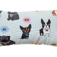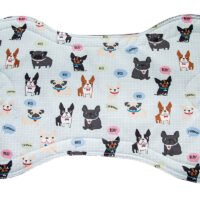 Almofada e Manta Coordenadas: Acessórios que complementam o conforto, com a mesma estampa exclusiva de cachorrinhos azul.