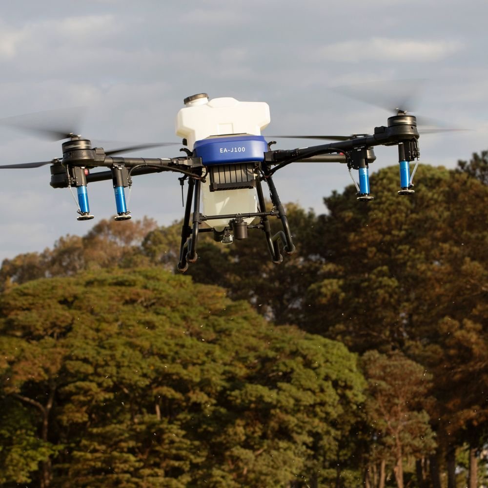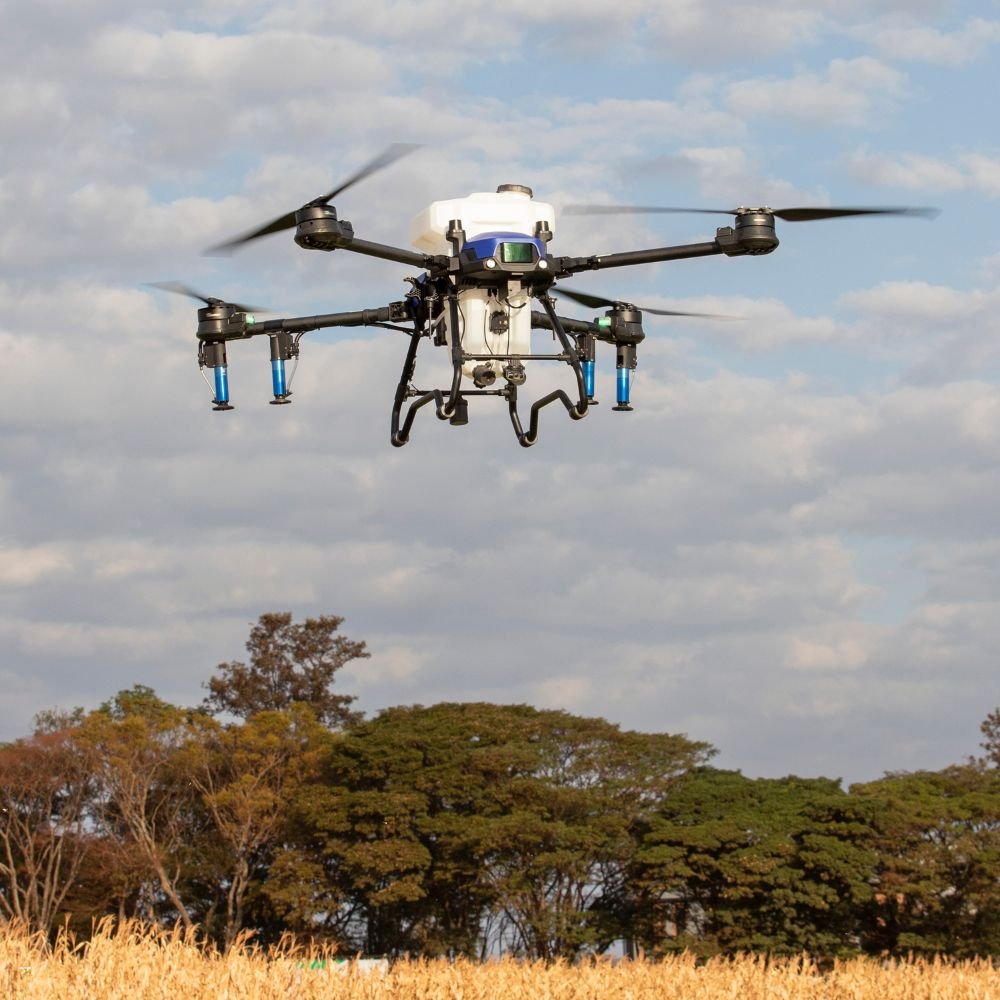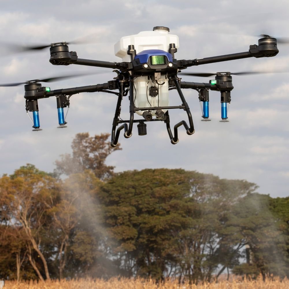 Sistema de 4 Bicos: Equipado com 4 bicos pulverizadores, o drone gera uma faixa de aplicação larga e uniforme, garantindo que o defensivo atinja o alvo mesmo em culturas mais fechadas ou em terrenos irregulares.