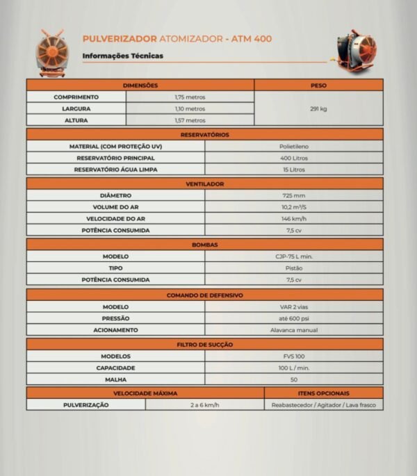 | Modelo | ATM 400 (Atomizador) |
