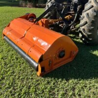SISTEMA DE MARTELOS (ALTA PERFORMANCE): O grande diferencial técnico. Equipada com martelos reforçados (conforme fotos), ela possui maior inércia e força de impacto que as facas convencionais. Isso permite triturar material lenhoso, talos grossos e vegetação densa, transformando tudo em “mulching” (cobertura morta) rapidamente.