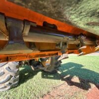 ACABAMENTO DE SOLO (ROLO TRASEIRO): Possui rolo compactador traseiro com regulagem. Ele ajuda a copiar o terreno, evita que os martelos “escalpelem” o solo e deixa o material triturado nivelado sobre a terra.