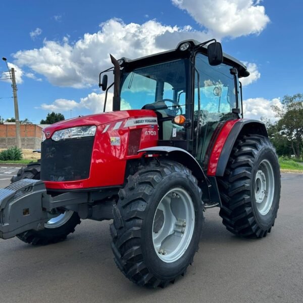 Colocamos à venda este Trator Massey Ferguson 4709 4×4 (Ano 2019/2020). Um trator seminovo, cabinado, 100% funcional e operacional, pronto para o trabalho de precisão.