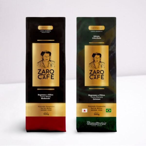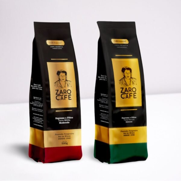 - 01 Pacote Zaro Café Especial Intenso Moído – 500g (Código: ZCIM5) – Café selecionado com torra escura, intensificando as notas de chocolate amargo e proporcionando uma experiência de café encorpado e marcante.