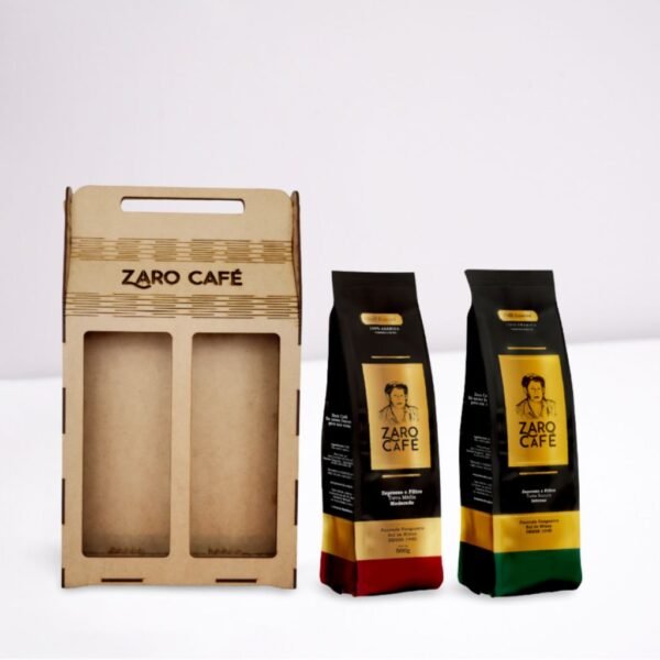 - 01 Sacola em MDF Zaro Café para 2 pacotes de 500g (Código: SMZC2P5) – Embalagem estilosa e resistente, perfeita para presentear.