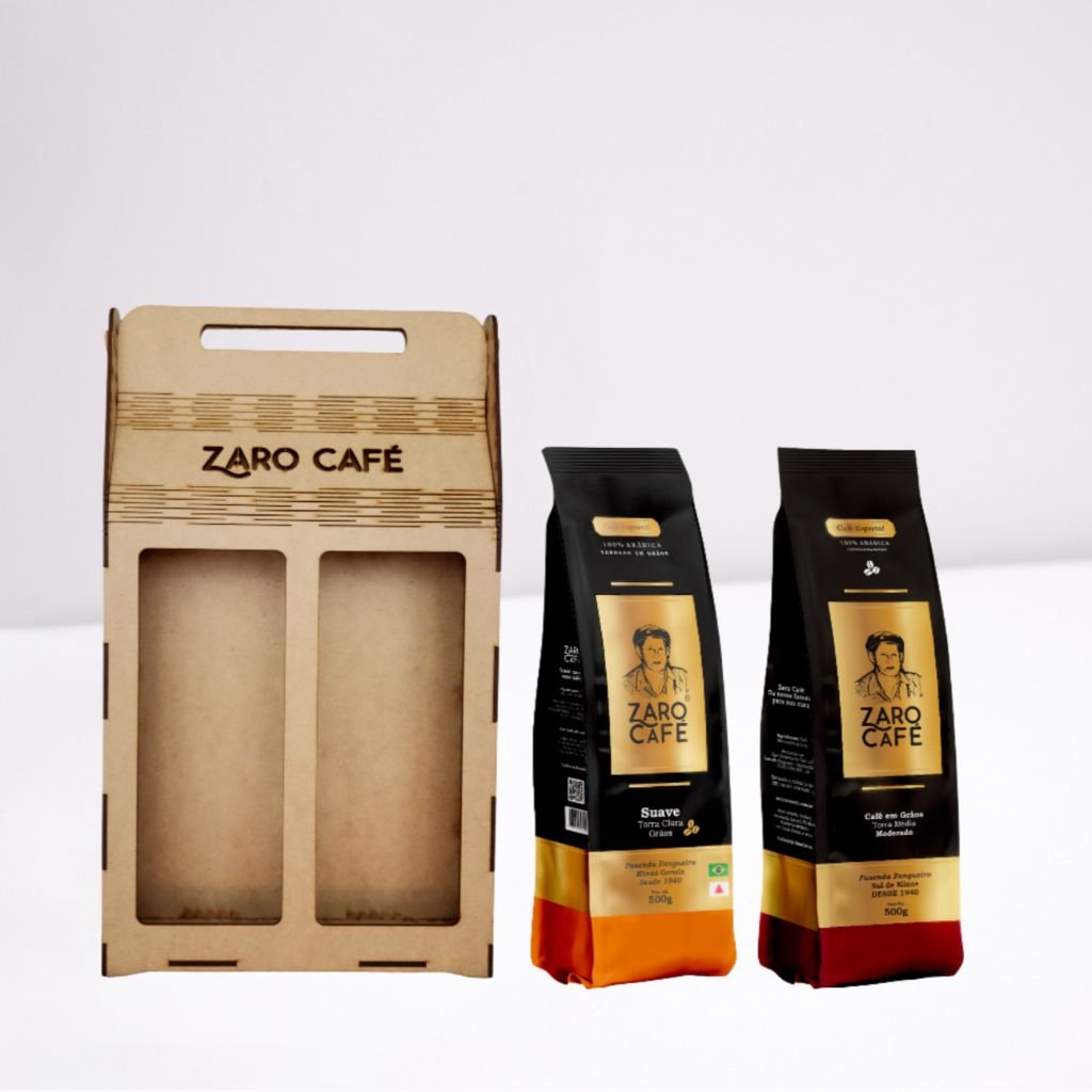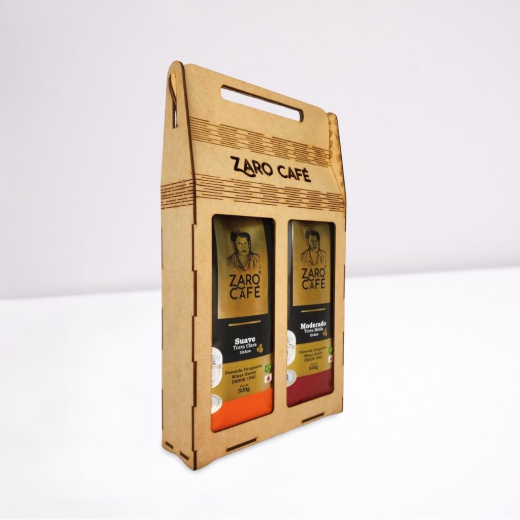 - 01 Sacola em MDF Zaro Café para 2 pacotes de 500g (Código: SMZC2P5) – Embalagem estilosa e resistente, perfeita para presentear.