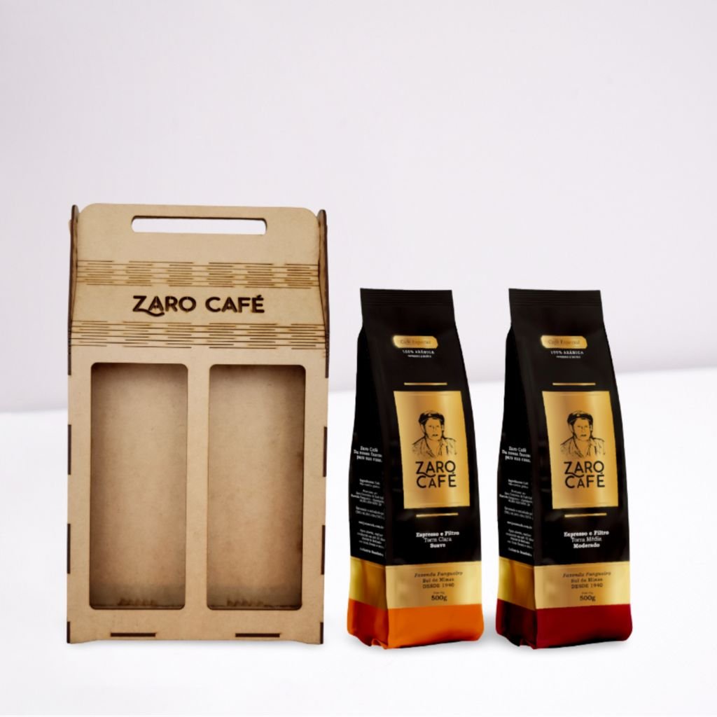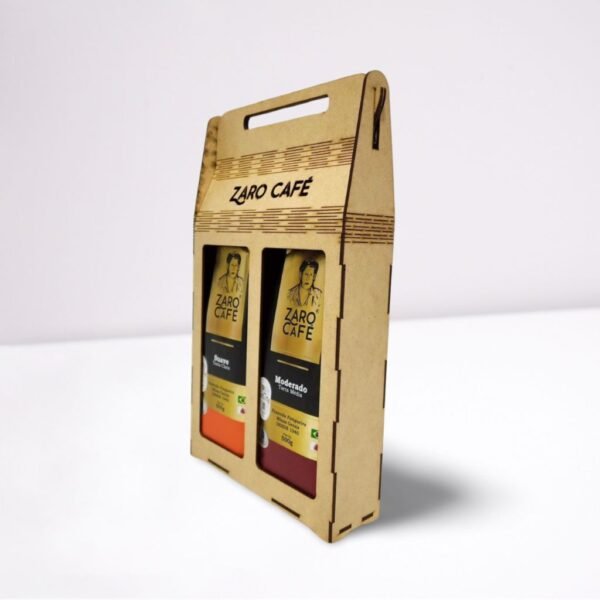 - 01 Sacola em MDF Zaro Café para 2 pacotes de 500g (Código: SMZC2P5) – Embalagem estilosa e resistente, perfeita para presentear.
