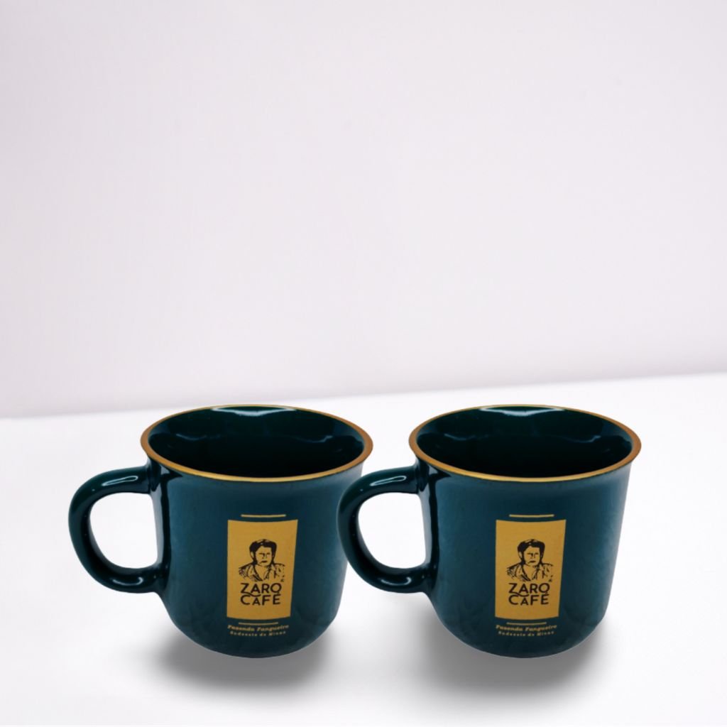 • 02 Canecas Zaro Café Verdes com borda dourada – 200ml cada (Código: CZCVD200) – Estilo retrô e elegante com a marca Zaro Café