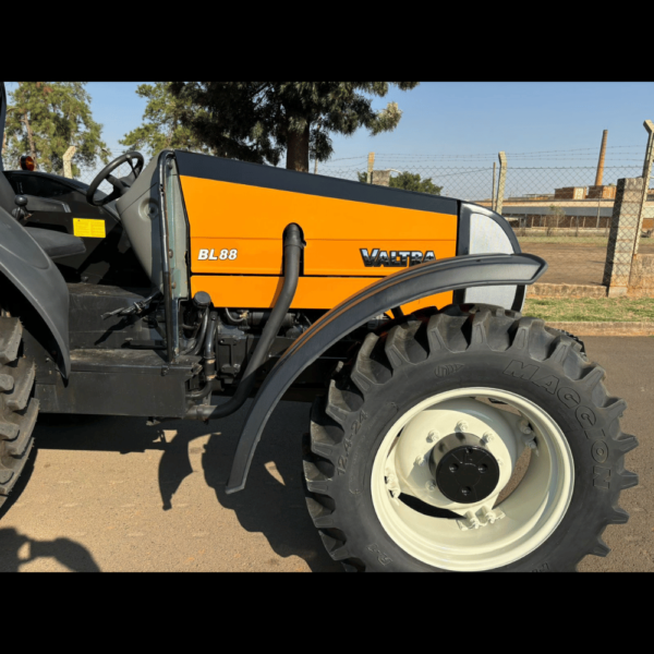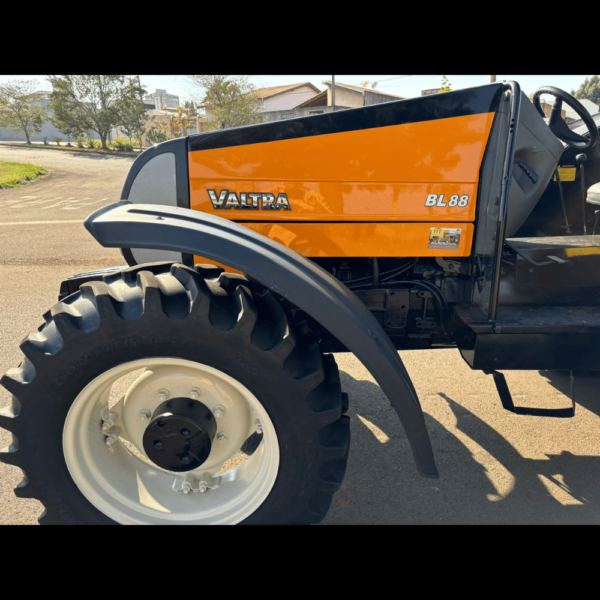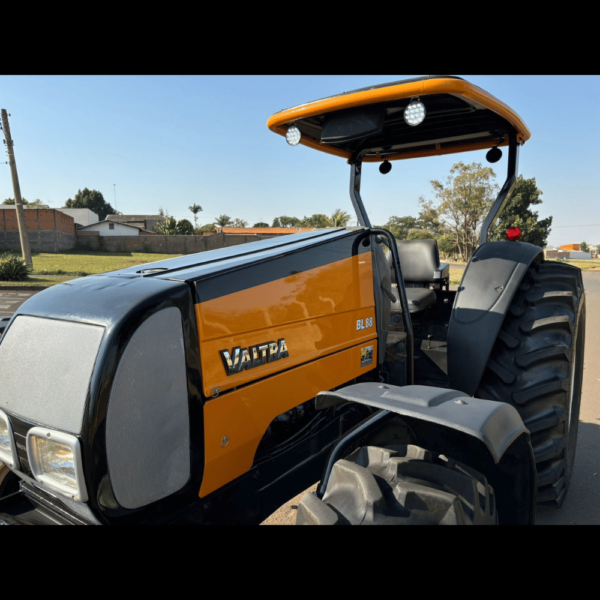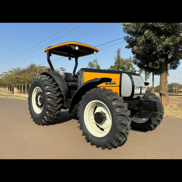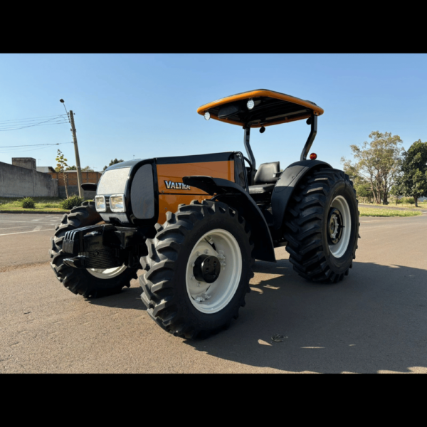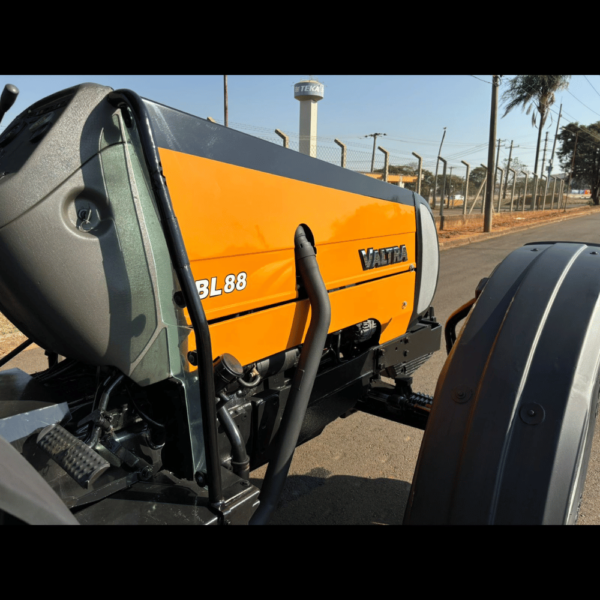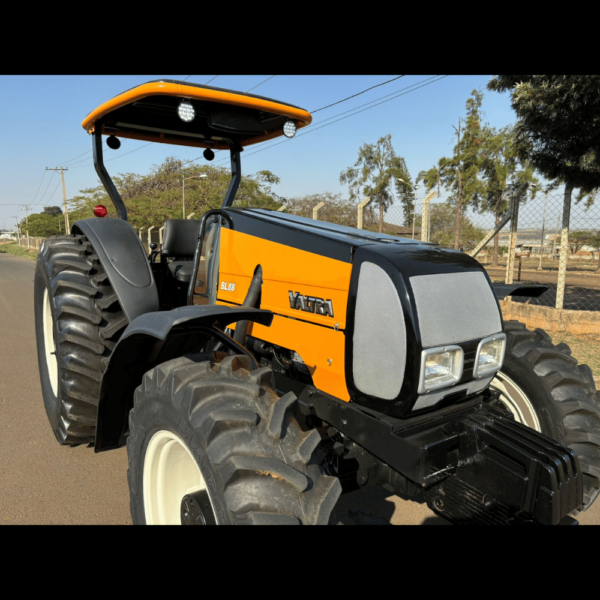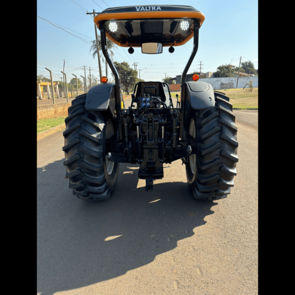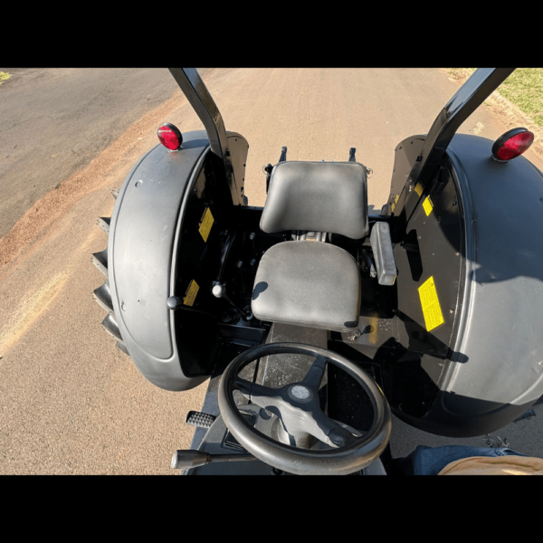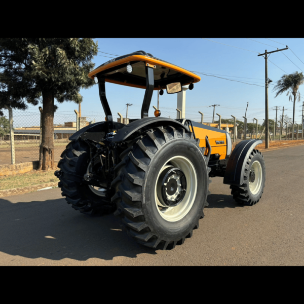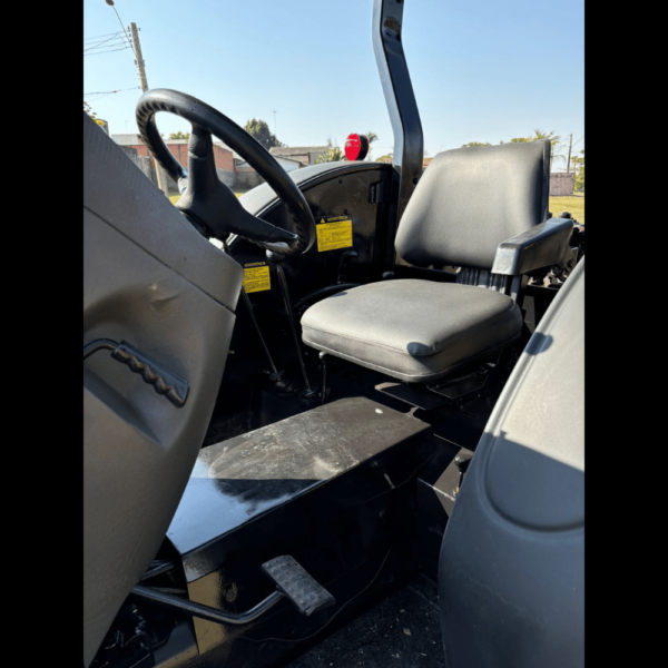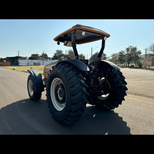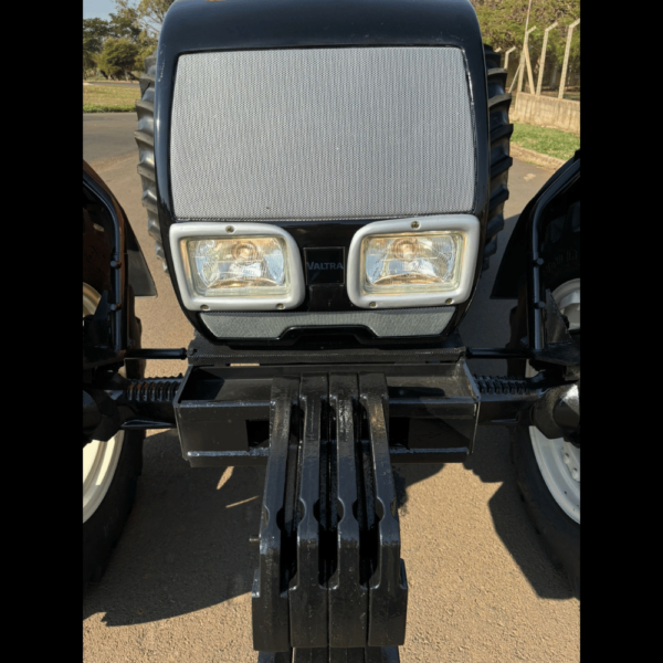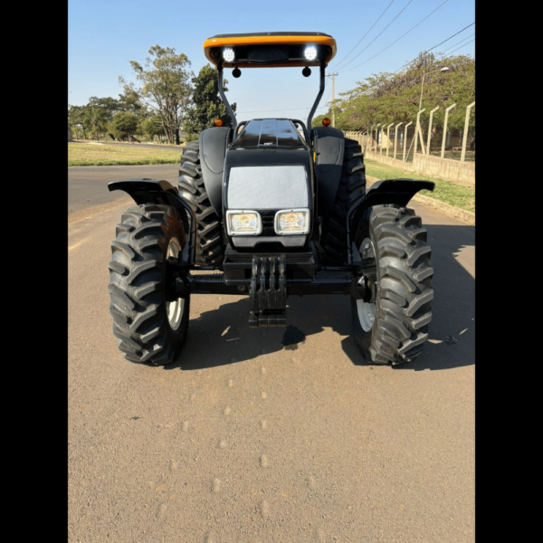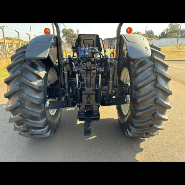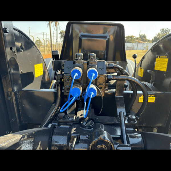 TRATOR POSSUI: CONTRA PESOS DIANTEIROS E TRASEIROS, COMANDO HIDRÁULICO DUPLO DE 4 SAÍDAS, 2 CILINDROS AUXILIARES NO SISTEMA HIDRÁULICO E PARALAMAS DIANTEIROS